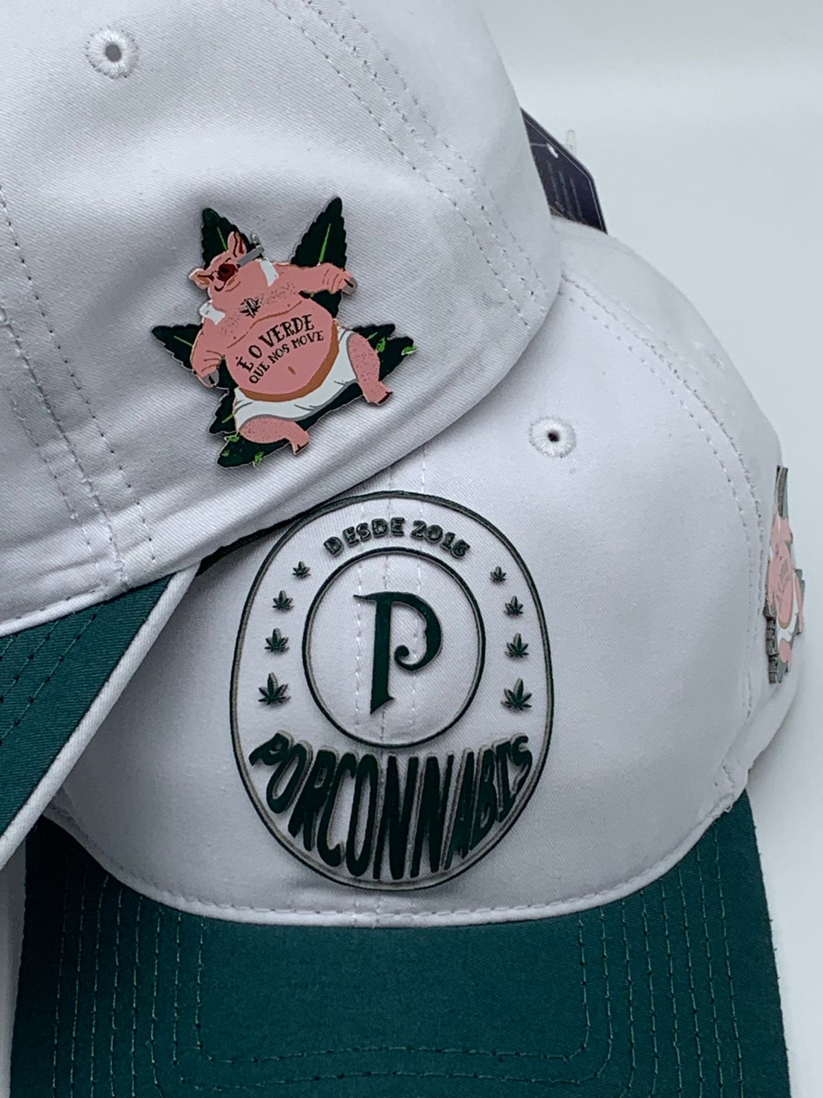 Boné modelo dad hat Branco com aba verde